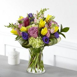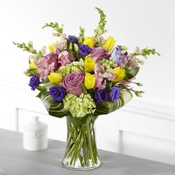 The freshness of bright spring flowers brings comfort and peace to those celebrating the beautiful life of someone they lost. Within our Wondrous Memories Bouquet, your messages of sympathy are complemented with bursting tulips, roses, hydrangea and double lisianthus in radiant garden hues. - Details: