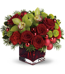 You may not be able to guarantee a white Christmas, but with elegant touches like green cymbidium orchids and stunning red roses, you can be assured of sending a merry and bright one! *Keepsake Vase/ Considered a small vase arrangement*