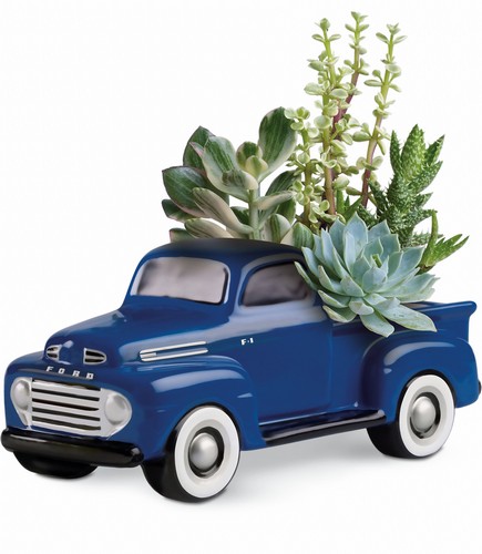 This Father's Day, get Dad's motor running with this collectible gift! In the perfect shade of blue, this charming ceramic pickup truck presents an array of living succulent plants. What a beautiful, fun-filled display for dad's desk or bedroom! Approx. 10 1/4 W x 10 1/2 H