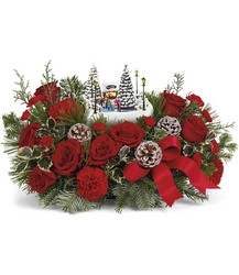 Celebrate the season with this delightful Thomas Kinkade collectible, nestled among festive red roses and winter greens-a memorable gift that lights up with a classic ice skating scene for extra holiday joy.